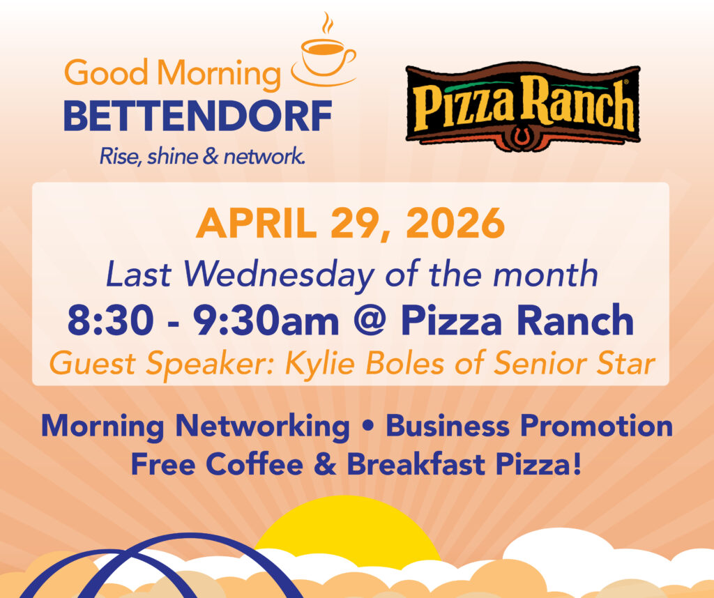 We invite you to join us at Pizza Ranch on the last Wednesday of every month for a complimentary breakfast pizza and coffee. This is a great opportunity to meet and network with other local business owners in the community. During the event, we encourage you to introduce yourself and your business to the group and bring your business cards and any promotional items you would like to share. This is a fantastic way to get your business noticed and build relationships with other professionals in your area. Be sure to invite someone to attend with you.